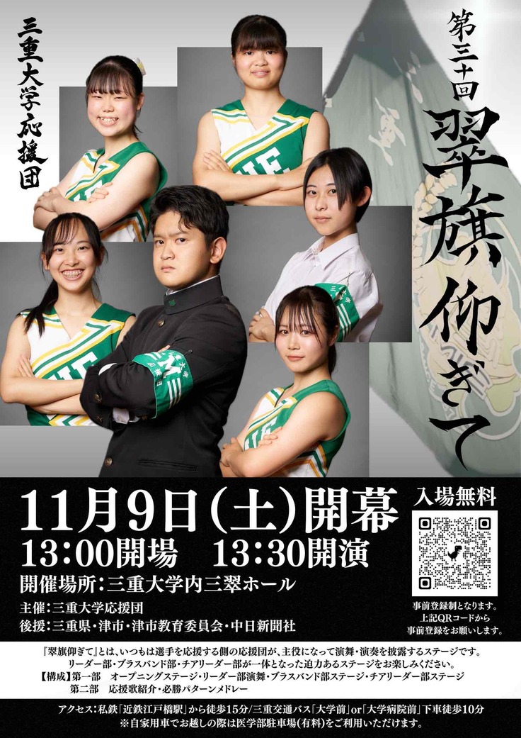 三重大学応援団「第30回 翠旗仰ぎて」 開催のお知らせ