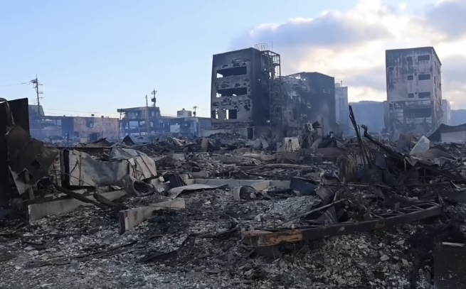 車で避難は道が塞がっていて困難で必死に高台に避難し、燃える輪島朝市を呆然と眺めることしかできず、全てを失いました。 翌日の輪島朝市は、想像を遥かに超える光景で、涙が止まりませんでした。