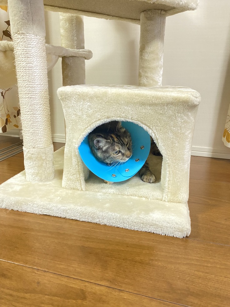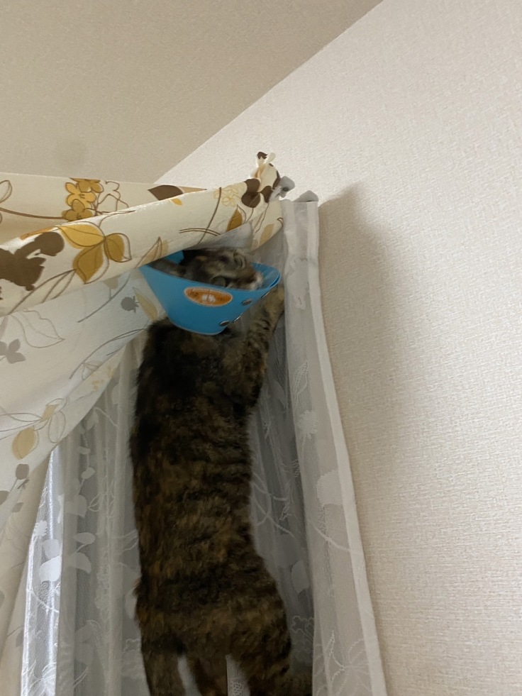 傷を保護するためのカラーもぜーんぜん気にしないので、どこでも入っちゃいます。