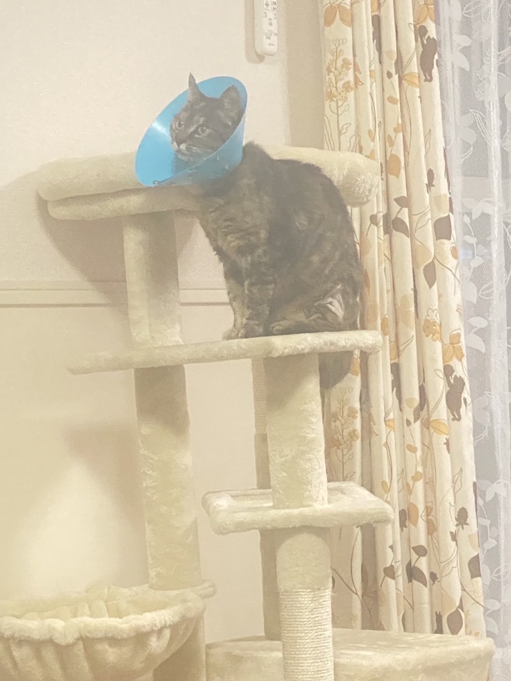 最近のびーちゃんはキャットタワーを少し登れるようになりました。上まで乗せてあげると窓の外を見るのが日課です🐈哀愁が感じられる後ろ姿が愛おしい❤️
