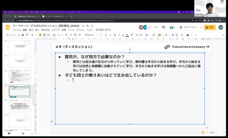 短期間ではありましたが、モヤモヤやアイディアが共有されることによって、「経営者や社会人が探究する場が新たに生まれたこと」「思考の整理や言語化をサポートするという共事性が生まれたこと」「これまで身近な人に話しづらかったような日々のモヤモヤを共有する場として参加者に認知されたこと」がわかりました。