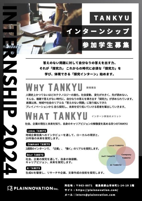 この取り組みは、『地域の次の100年を切り開く「探究インターンシップ」』として、郡山市の市政100周年記念事業に採択されました。