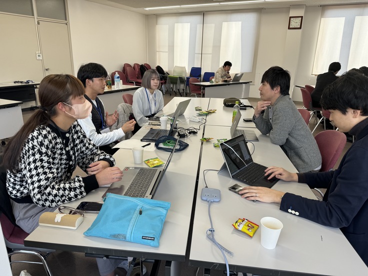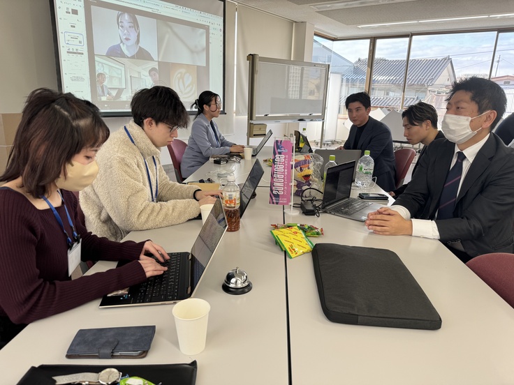 福島県内はもちろんのこと、北は岩手、南は埼玉や東京から集まった学生の企業プレゼンを聞く様子は真剣そのものです。プレゼン内容への質問のみならず、学生は各自の興味関心をもとに既に提案やこのプログラムを通じてさらに深掘りして探究したいテーマを宣言するチームも現れました。