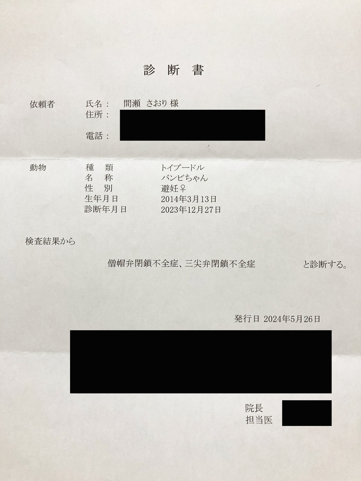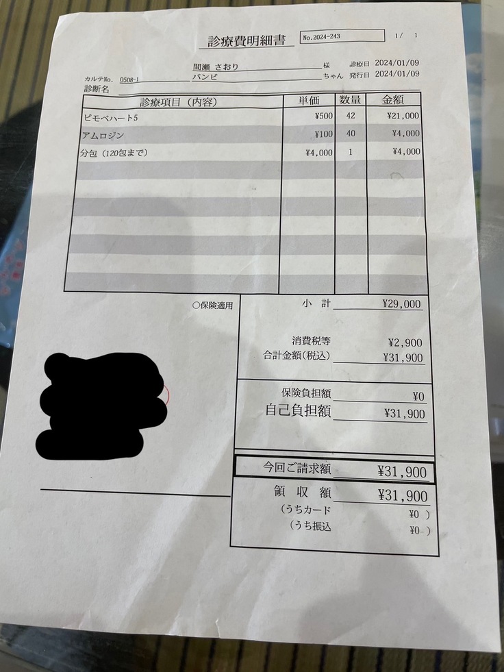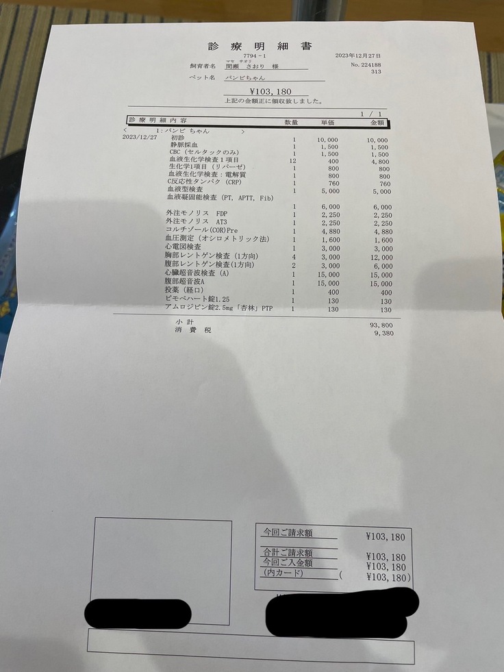 「僧帽弁閉鎖不全症」との診断を受けて以来、バンビの治療には莫大な費用がかかっています。