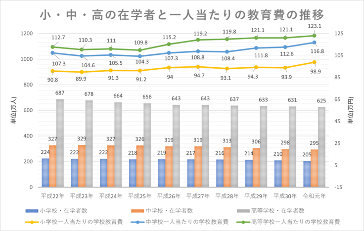 123万1千円、特別支援学校が742万6千円と最も多く次いで高等学校(定時制課程)の201万2千円となっている。