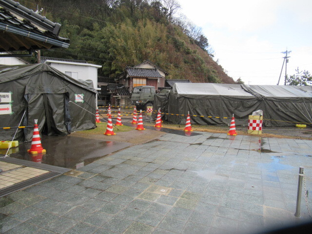 入浴は道の駅赤神で設営されている自衛隊のお風呂を利用させていただいています。
