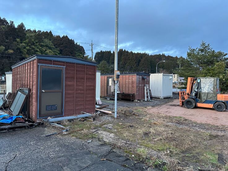 倒壊を免れたコンテナを一か所に集めるためコンテナ内の整理からはじめ、仮の事務所・休憩室・倉庫として活用できるようにし、それぞれのコンテナに必要なものを運び入れました。ちょうどコンテナを一か所に集めたころから私は一足先に避難先から事務所内で寝たりと珠洲での活動を本格的に再開しました。
