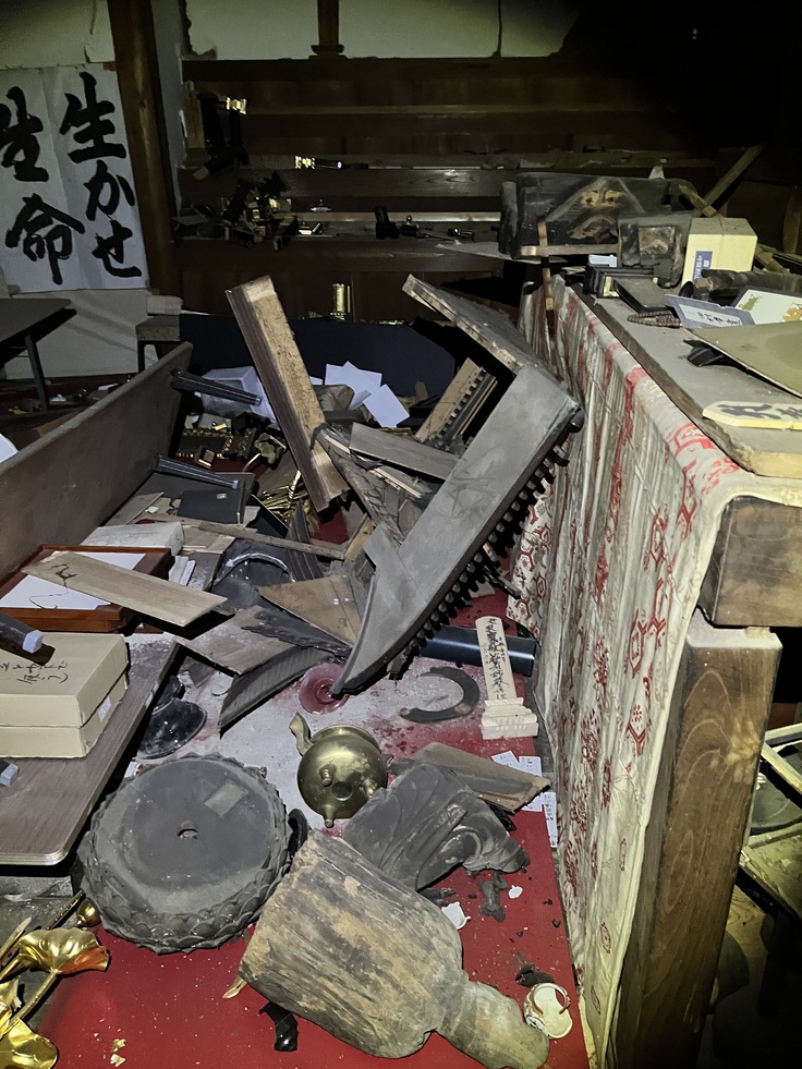 1月1日に能登半島地震で寺院、山門、仏像が倒壊、破損等してしまい