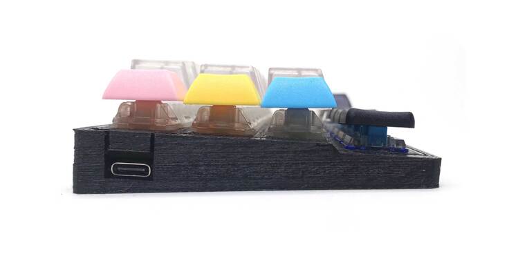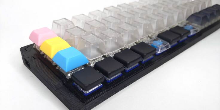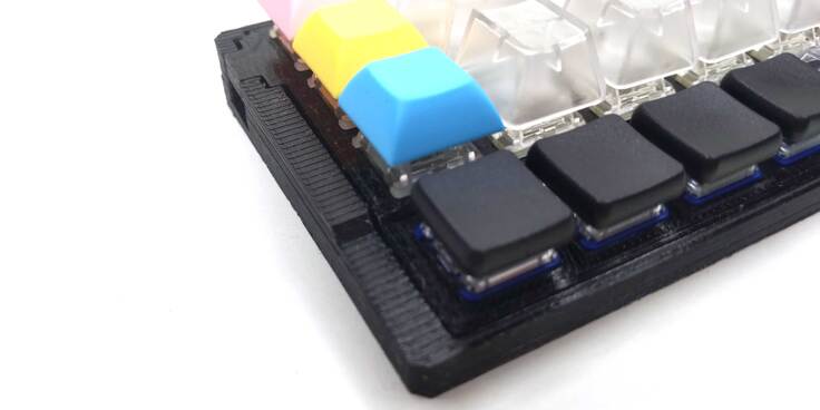 キーボードの外側のパーツは3Dプリンターを使って出力しております。なので一つ一つ微妙な差異が存在しますし、積層痕が見えます。