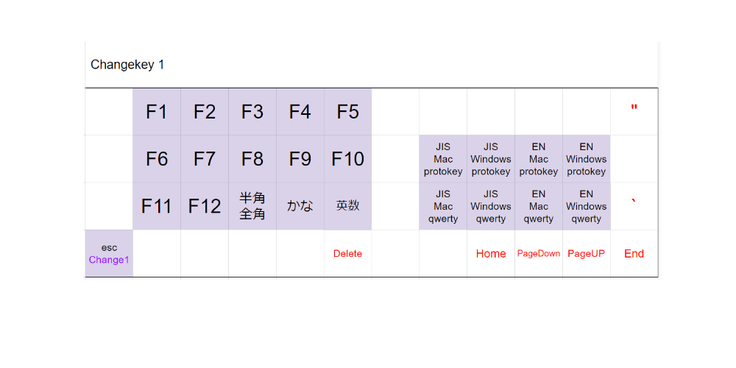 この【Change1】キーを長押ししつつ、右側に配置されたボタンを入力することで、Macだったり、英語キーボードとして認識されます。
