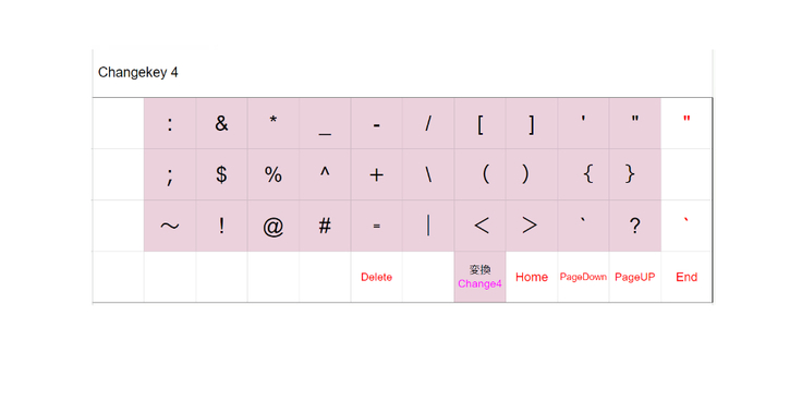 一般的なキーボードに配置されている記号類すべては【Change4】キーを長押しすることで入力が可能です。