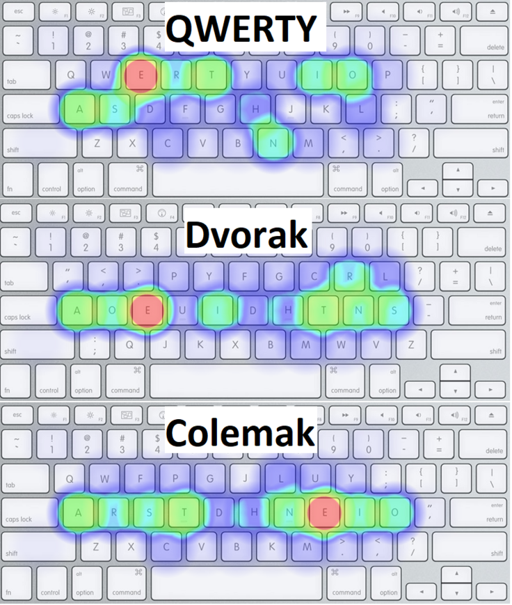 画像のようにqwerty配列は小指に対する負担が強く腱鞘炎になるリスクが最も高いです。