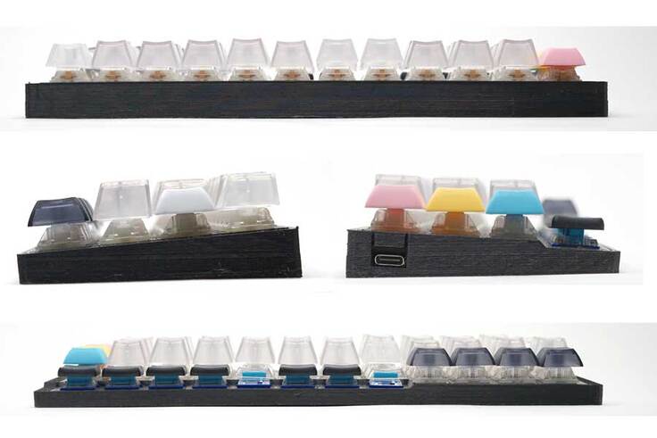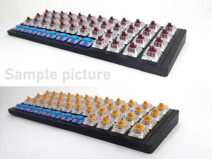 今回動画や画像で使っているキースイッチはテストサンプルのキースイッチであり、販売用のキースイッチではありません。販売用のキースイッチは使い勝手の良く、耐久力の高い Gateron Pro3.0 タイプのキースイッチにする予定です。