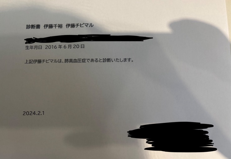 今回、ペットのちびまるが肺高血圧と胸水を患い、治療が必要となりました。
