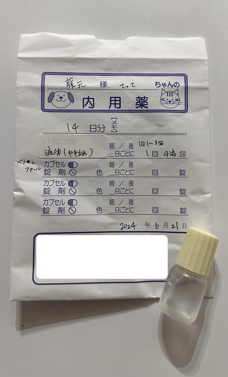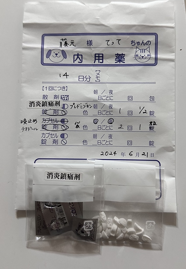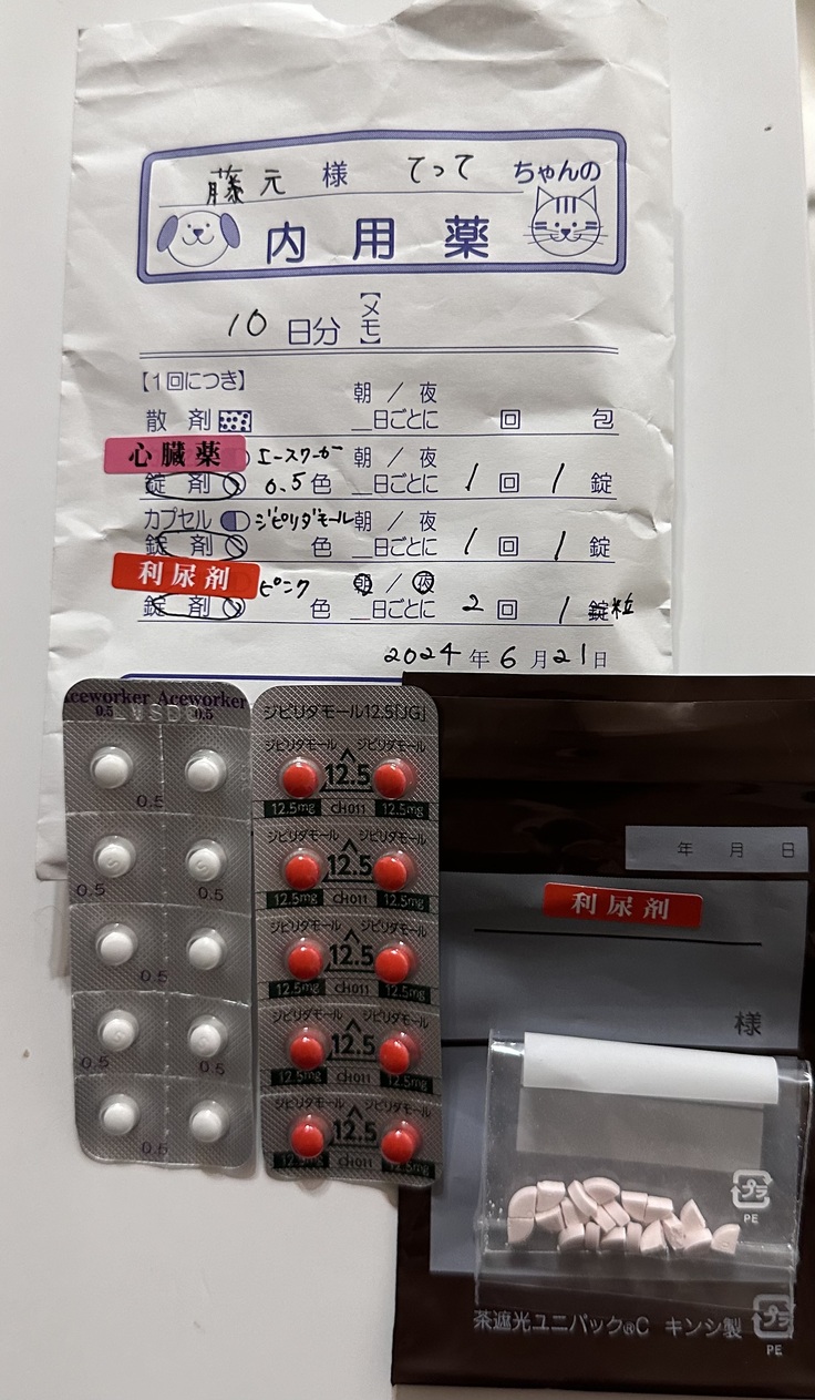 現在は、心臓薬、利尿剤、消炎鎮痛剤、咳止めを服用しています。