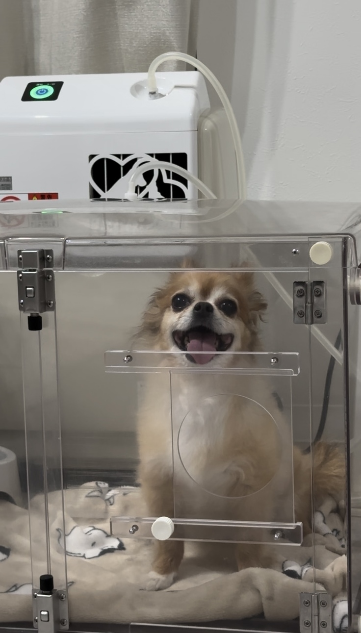酸素マスクを当てたり、体を摩ったり等を1時間程度繰り返すといつもの状態に戻りました。