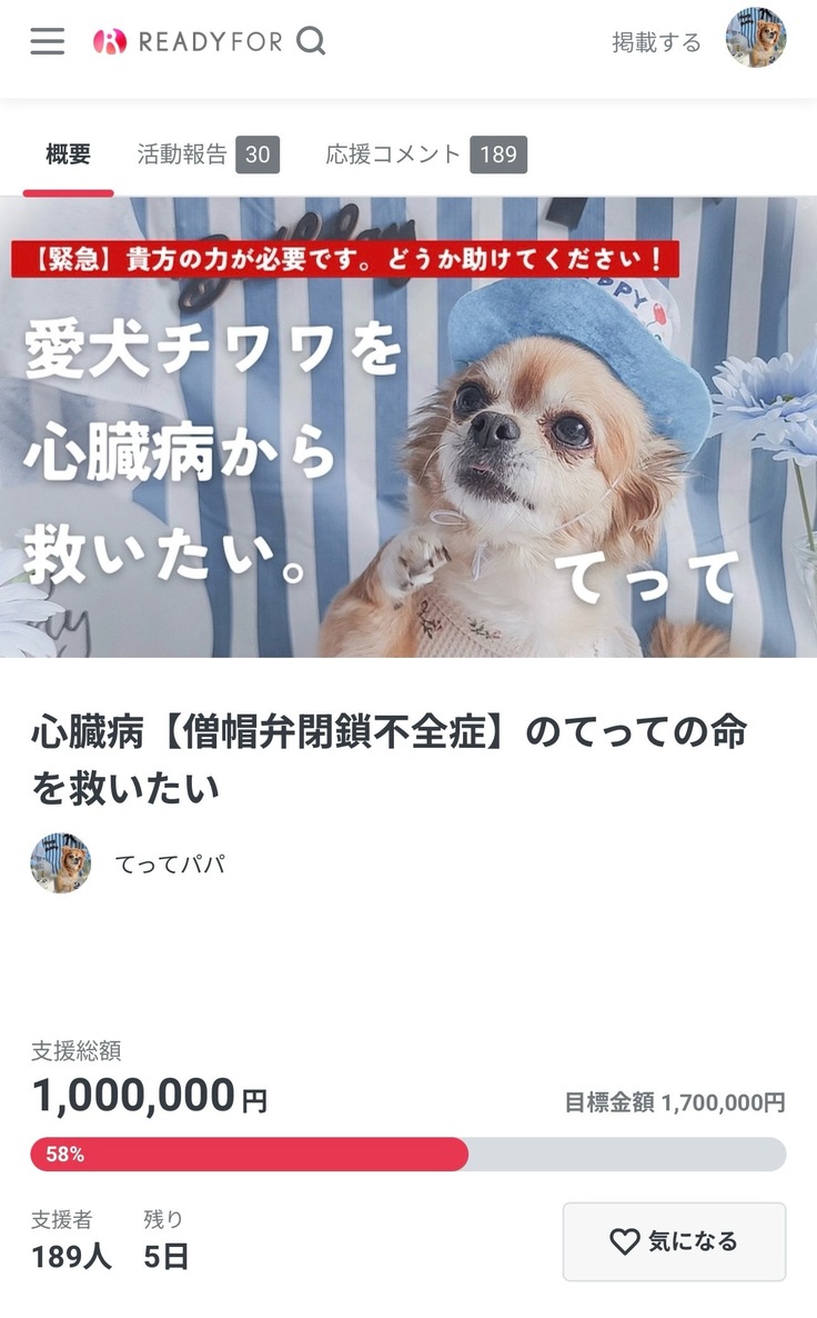 愛犬の心臓の手術が決まりました!少しだけ手助けしてもらえませんか?