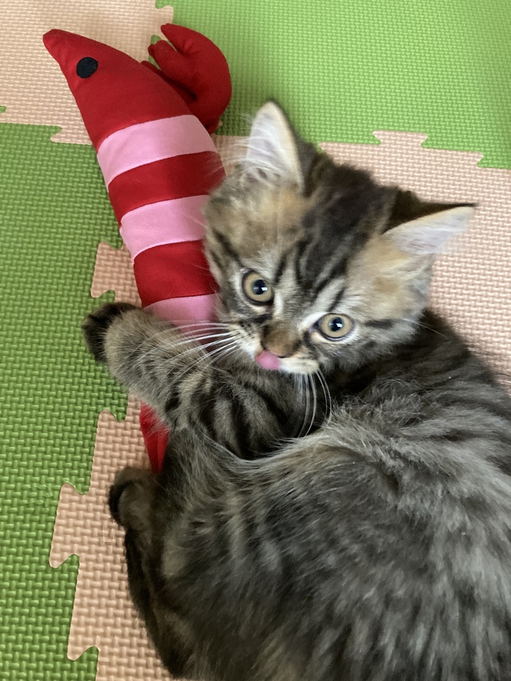 幸いお薬が効いた様子でだんだん元気を取り戻し前の子猫らしさに戻りご飯も食べておもちゃでも遊ぶ様になってきました。