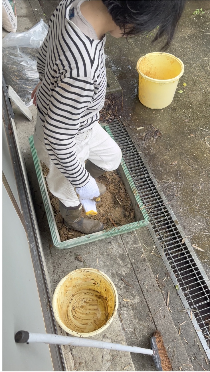 (6月27日撮影)切った葦を土と水と合わせて発酵させる