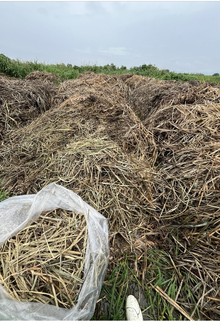 (6\27日撮影)発酵が進み最高の植物性堆肥になるのですが雑草も多く混ざり畑に雑草が増えて大変だから今は飼料くらいにしか使い道がないとの話しでしたが丁度、高来のお店となる壁の補修をしないといけなかったのでこの葦を使わさせて貰えないか?伺ったところ好きなだけ持って行って良いよ。と了承頂きました。