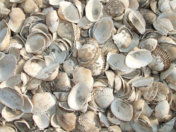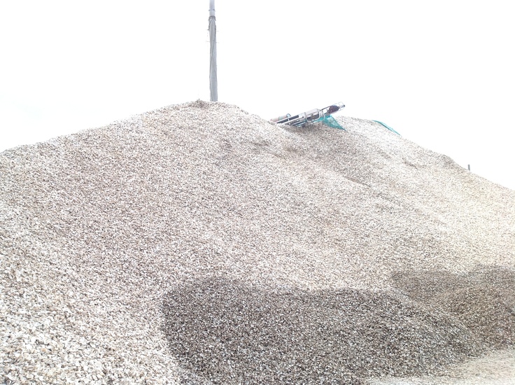 おつまみでよく見る赤貝煮付けを作った後に出る貝殻が山積みにされています。