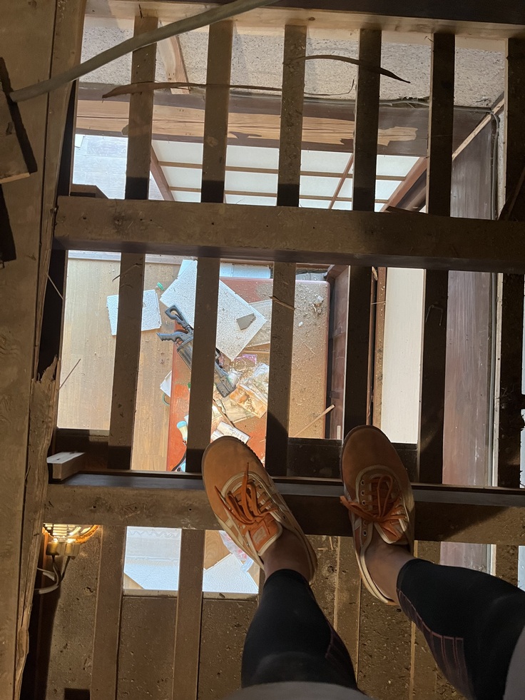 ③以前の階段は加工場厨房となる場所にあったので居住スペースの部屋に移設する為に登り口を新たに開口しました。