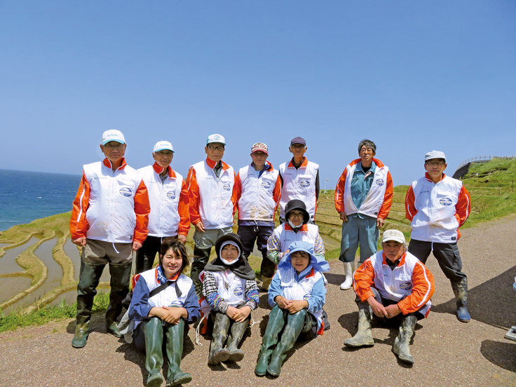 2006年(H18)に結成された地元有志団体。約500枚のオーナー田の耕作管理やイベント時の指導等を行っています。全員が千枚田近隣の住民で構成されており、会員数は約30人、メンバーは60〜70代が中心で、小さい頃から田んぼに慣れ親しんできたプロフェッショナルが多いのも特長です。千枚田は一枚一枚が小さく、ほとんどの作業が手作業であり地滑り地帯でもあることから、特別なノウハウが必要とされる千枚田で、知恵と経験を受け継ぎながら心を込めて米作りを行っています。
