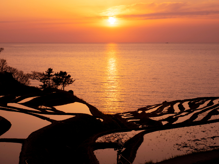 白米千枚田は、石川県輪島市白米町にある棚田です。日本海に面した約4haの急斜面に、1004枚の小さな田んぼが幾重にも重なる絶景は、日本の棚田百選、国指定文化財名勝に指定されています。一つ一つの田んぼが小さく、大きな農業機械も入らないため米作りは昔ながらの手作業で行います。2011年には「能登の里山里海」が日本で初めて世界農業遺産に認定され、白米千枚田はそのシンボルとして、能登を代表する観光スポットとなっています。