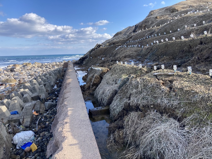 修復方法はこれからの検討にはなりますが、大型機械で修復する部分、人力で修復する部分が出てくるかと思われます。人力の部分では、田んぼの亀裂に土砂を、畦の亀裂に土のうを積み、足で土砂を踏み固めます。土手においても、棚田の上部から下に向かって強い力がかかり膨れ上がっているため、地滑りを起こさないよう多くの杭を打ち込んでいく必要があります。小さい田が多いので、鍬や木槌、スコップなどを使った地道な人力での作業が多くなることが見込まれます。また、景観を維持していくための草刈りも欠かせません。通年、春から秋にかけて6回ほど棚田全体の草を刈るため、草刈り機や燃料代も必要です。ライフラインが整う時期を見計らってにはなりますが、早ければ3月から修復に取り掛かりたいと考えています。