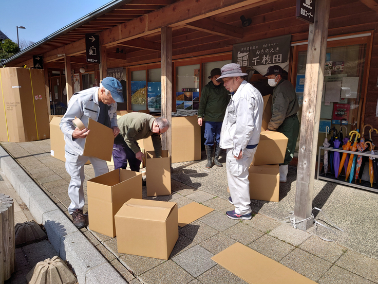 町は簡易水道を使っており、業者と何度も山に通い調べていますが、なかなか漏れの原因が掴めず難航しております。愛耕会の宿営所として整備を進めている道の駅千枚田ポケットパークにも水が来ないので、シャワーや食事、トイレなどはしばらくは湧き水を汲んでの対応になりそうです。