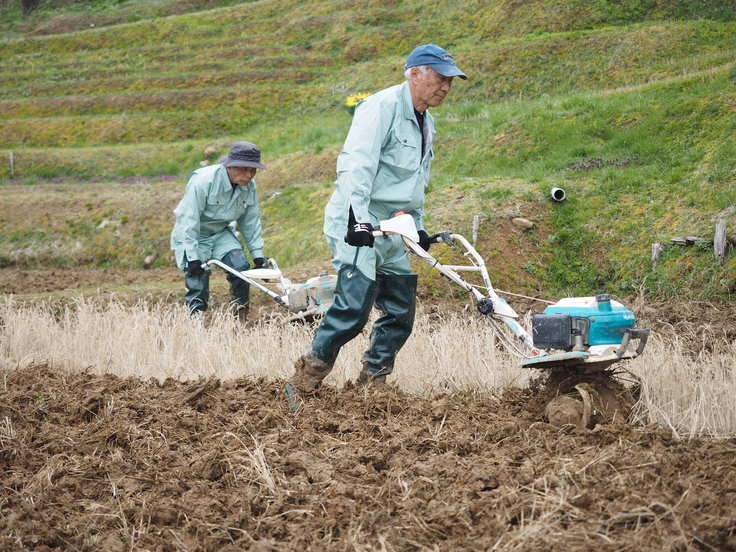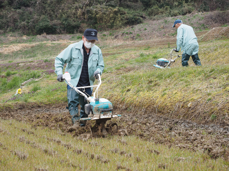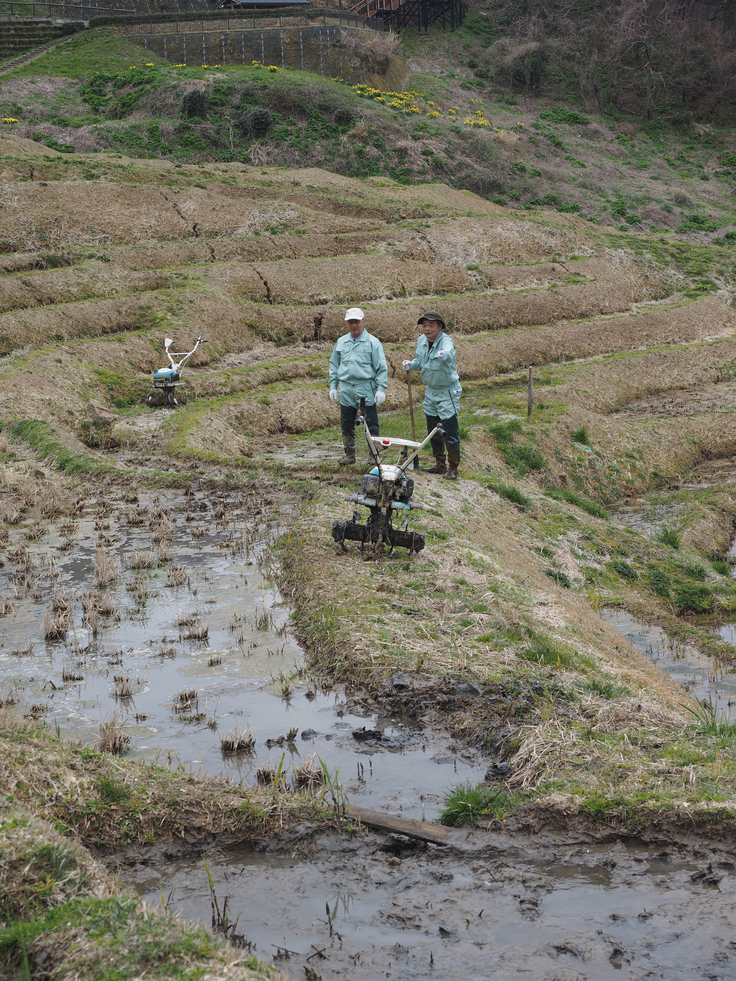 4月1〜2日にかけて一部の田んぼで「田起こし」を行いました。冬の間に固くなった土を掘り返して耕す、春の最初の大仕事です。被害の少ない田んぼがある程度まとまっていて、尚且つ水を入れた時に亀裂のある田んぼに水が入らないような、うまく水捌けができるような場所でないといけません。そんな場所をなんとか3箇所見つけ、わずかですが作付けをしたいと思います。