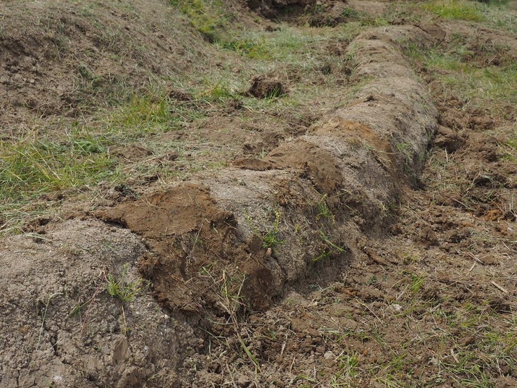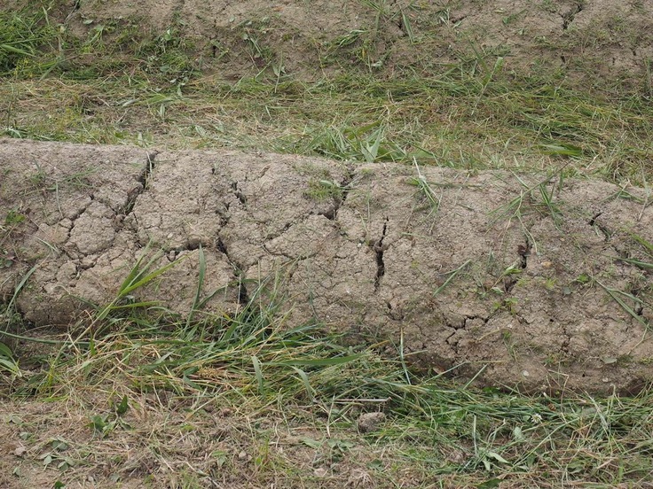 畦の亀裂はまず、まわりの土(表土)を取り除く