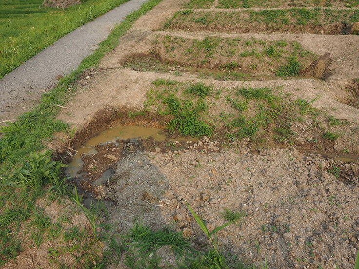 28箇所のうち、8箇所は畦塗りをしても水漏れが収まりませんでした。地中深くに亀裂があるのかもしれません。