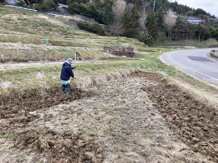 広い田んぼもひと鍬ひと鍬掘り起こす
