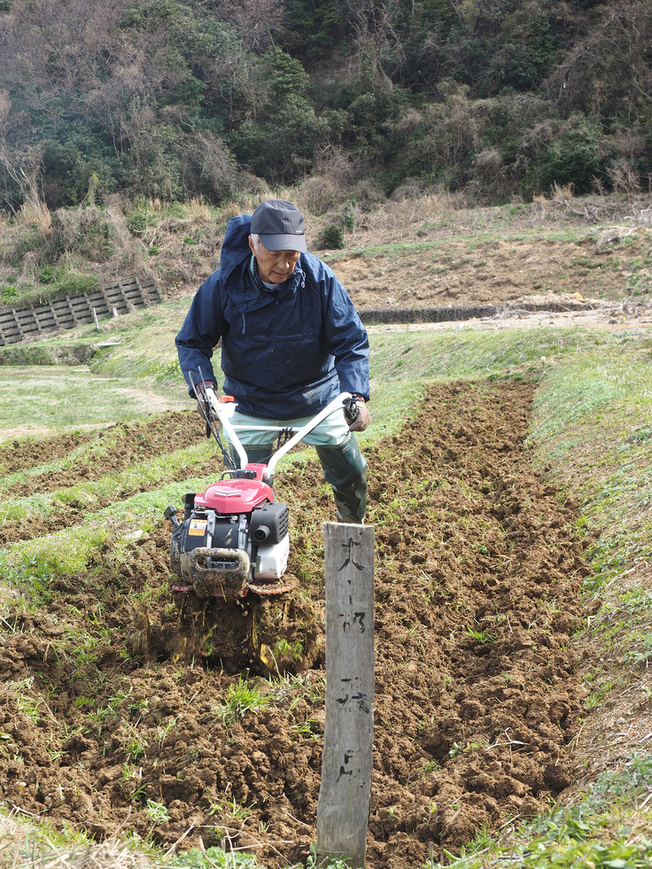 小型耕運機で土を掘り起こします。
