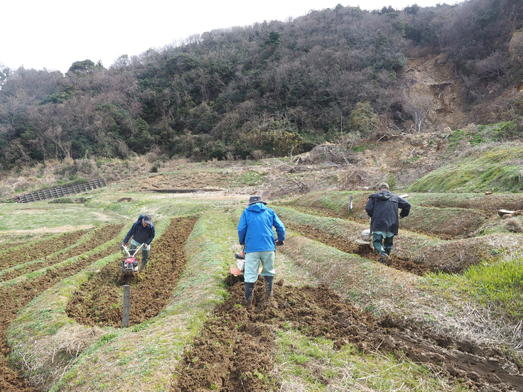 震災や豪雨で不要な水が入り込んでいることや、水捌けがうまく行われなかった田んぼが湿田化しており、耕運機の刃がうまく入らず何度もはまってしまいました。