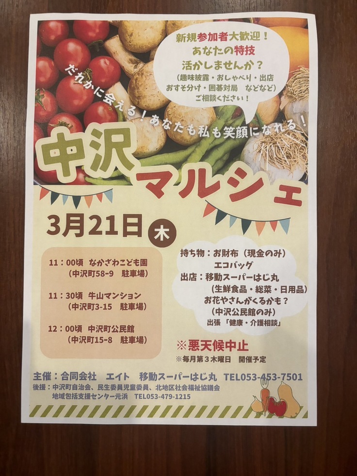 また、月に一度ご後援の皆様の協力を経て、『中沢マルシェ』を実行させていただいております。