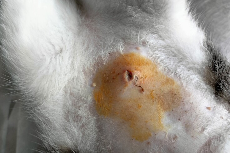 manisちゃん、手術の開いた患部を診て貰い消毒と薬を塗っていただきました。