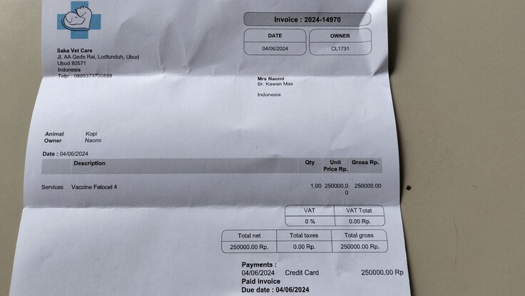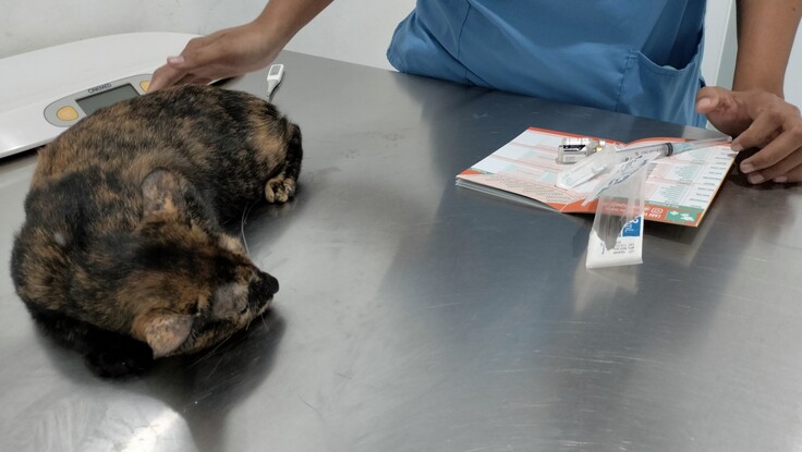 ワクチン接種をしに保護施設へ連れて行くといつも熱があり延期になっていますたコピをクリニックへ。