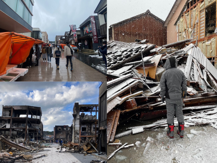 能登半島地震で壊滅的な被害を受けた飲食関連産業と海産加工場。
