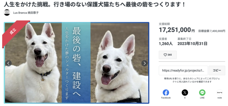 そして、これまで心の奥底でずっと実現を願ってきた夢であるシェルター建設を実現させよう、という結論にたどり着き、クラウドファンディングに挑戦いたしました。