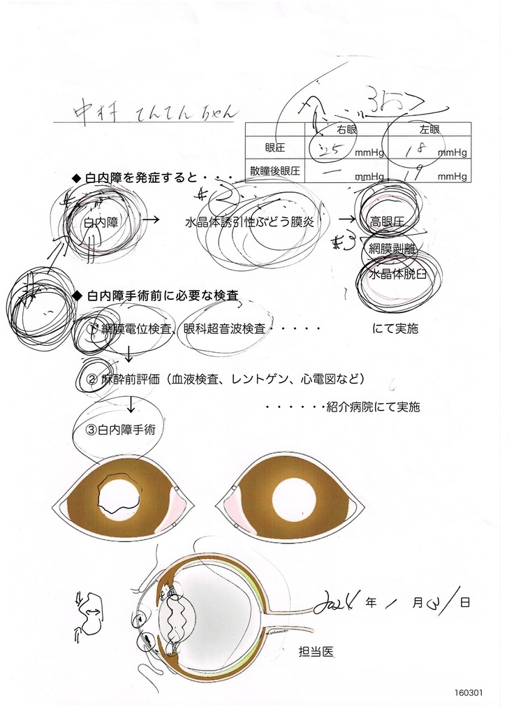 "てんてん"の白内障が進行していて、網膜剥離や失明の危険があったため