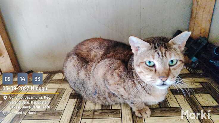 最初に出会ったのは、2019年になって間もない頃、西ジャワ州・チカランの飲食店街でした。エリは当時その区域の「おかみ」的存在で、夕方の食餌時には必ずその場に現れました。お昼寝時の正午に訪れても、大体会うことができました。レストランの人に養育されていたわけでもなく、ほかの猫たちの邪魔されることもなく、かなり長い間その場で生活していました。子育ては苦手ではありませんでしたが、病原菌が繁殖しやすい飲食店街です。成猫になるエリのこどもがいないことがわかったとき、保護して避妊手術を施すことに決めました。その時エリは妊娠していましたので、まずはハウスで出産させて、子育てが終わり次第、避妊手術を施しました。2021年の暮れのことでした。この時生まれたのが、現在ハウスで悪童ナンバーワンのクマくんです。エリちゃんは、推定7歳くらいで、インドネシアではもう相当年を取っているねこという扱いになりますが、不衛生な飲食店街の路上で鍛えてきたこともあり、身体は至って丈夫、病気はしたこともありません。年齢もあり、普段はおとなしく、外へもめったに出ないほど、ハウスのほかの猫たちともうまく付き合っています。そんなマイペースのエリちゃんをぜひ応援してあげてください。