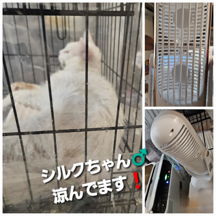他の🐱への感染を防ぐ為シートでカバーされているので扇風機で