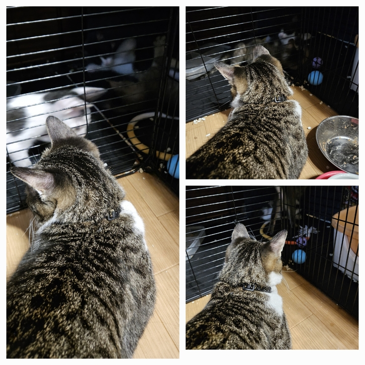 昨日も、脱走したとき隅っこに入らないよう、カルアちゃんと