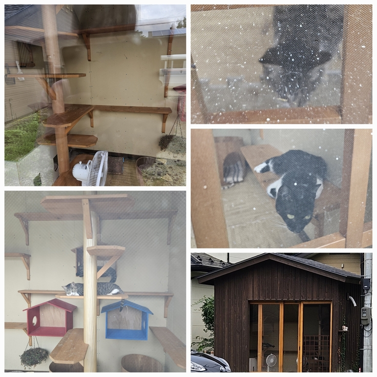 全て手作りで、🐱たちも居心地よさそうでした❗