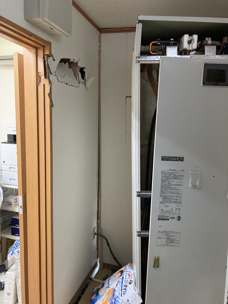 電気温水器が故障し、院内配管が破損した箇所があるので、お湯は出ず使えない蛇口もあります。
