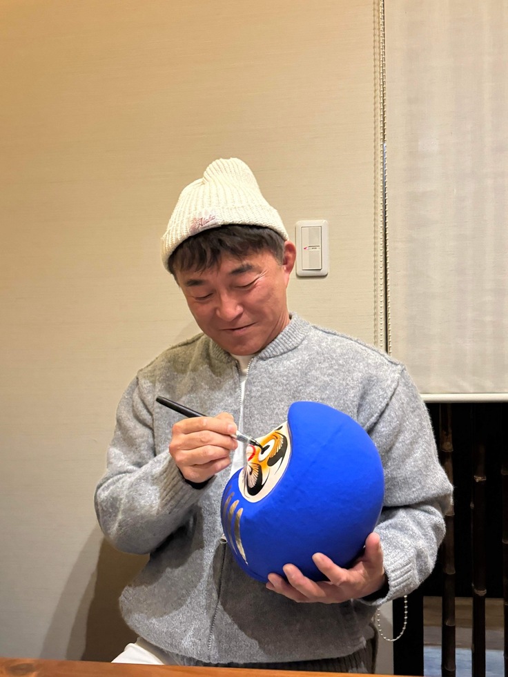 「ニュルブルクリンク挑戦の壮行会」を開いていただきました。思わぬサプライズプレゼントは、トーヨーブルーの群馬高崎の縁起だるま。眉は鶴、髭は亀。左目に墨を入れ、悲願を達成させて右目を入れます。この子を抱えて渡独しますね😛