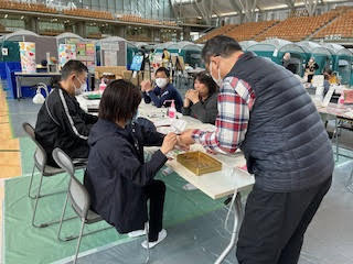 なかでも、門前からきたお母さんは家を出てくる際に老眼鏡を置いてきてしまったそうで、「新年早々、地震で暗い気持ちだったけど、目がよく見えるようになっただけで明るい気分になった。遠くのみなさんが私たちのことを思いやってくれて、しかもわざわざメガネを持ってきてくださって、本当に嬉しい限りだ」と目に涙を浮かべていらっしゃいました。眼鏡屋さんにもよろしくお伝えくださいとのことでしたので、しっかりとメガネトップさんにもメッセージをお伝えさせていただきます。