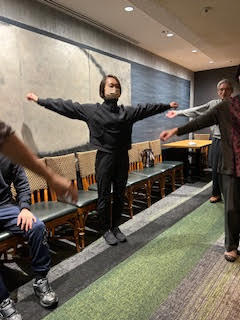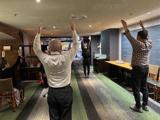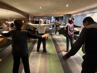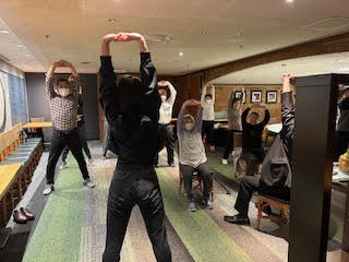 今日はホテルのご厚意で、お部屋でもできるストレッチを紹介する時間をいただきました。